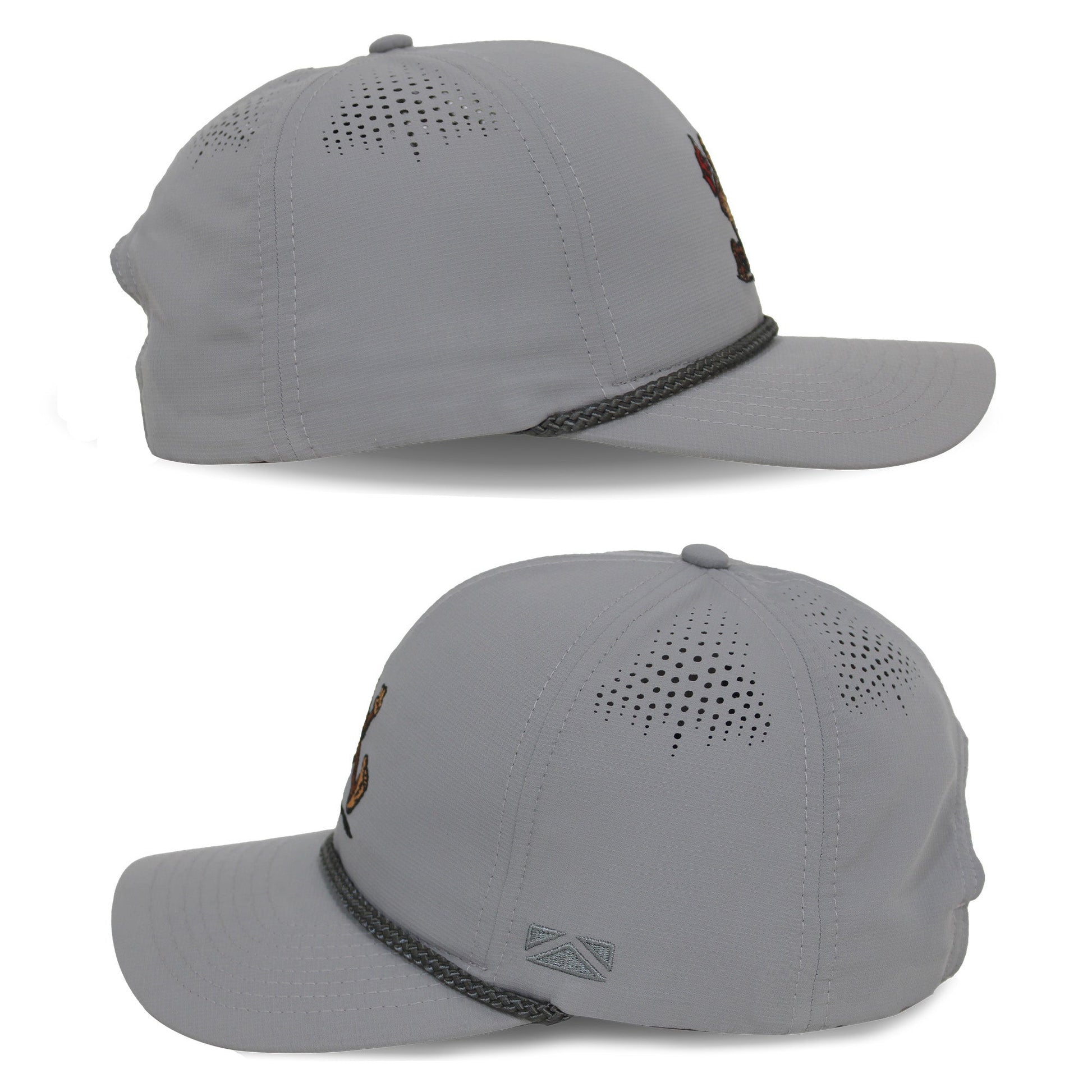 The Golf Sasquatch bigfoot performance rope cap is laser perforated and features an under crown inside print. Constructed on a micro ripstop polyester light weight fabric. Ideal for hot days on the course. Our COMFORT SNAP™ closure couple the stretch of elastic with the adjustability of a snapback. Lastly, This new golfing bigfoot hat features American Fit™ sizing which fits men's head sizes MD - XX.
