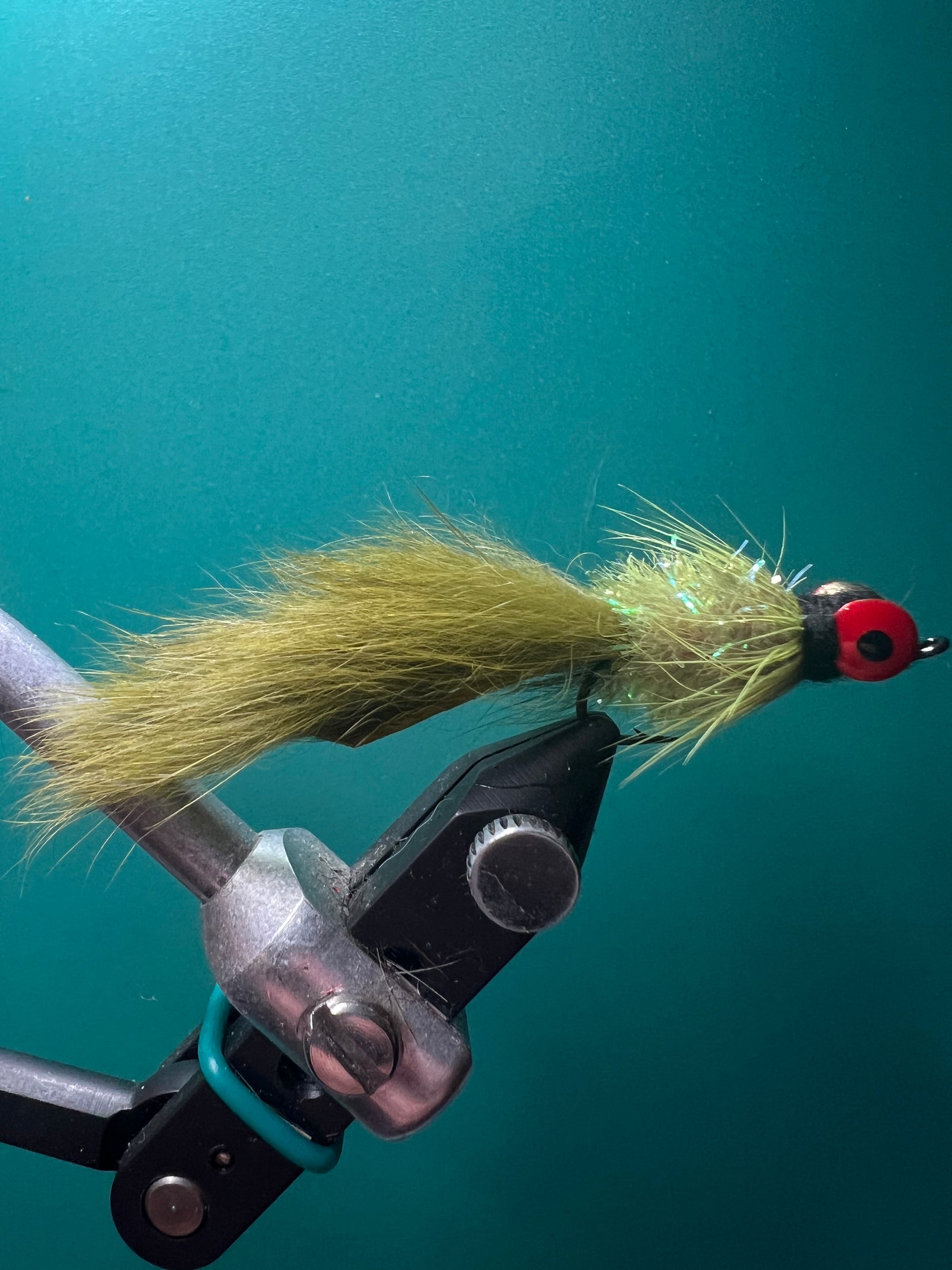 Hot Shot Leech tied in Olive with Dumbbell Eyes.