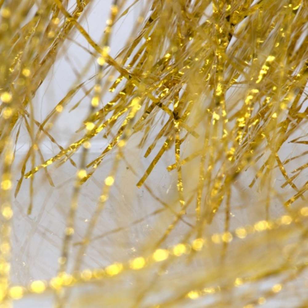 When we manufactured these tinsels we did market research and found that most tinsels were tied in Half, meaning lots of the tinsel in the center was unusable plus only Half of each hank could be used for larger predator flies. As a consequence with SemperFlash Krinkle Solid you get 10inch / 25cm long hanks tied at the top rather than center tied tinsels meaning that you can produce really long wings on flies for saltwater or large predators.