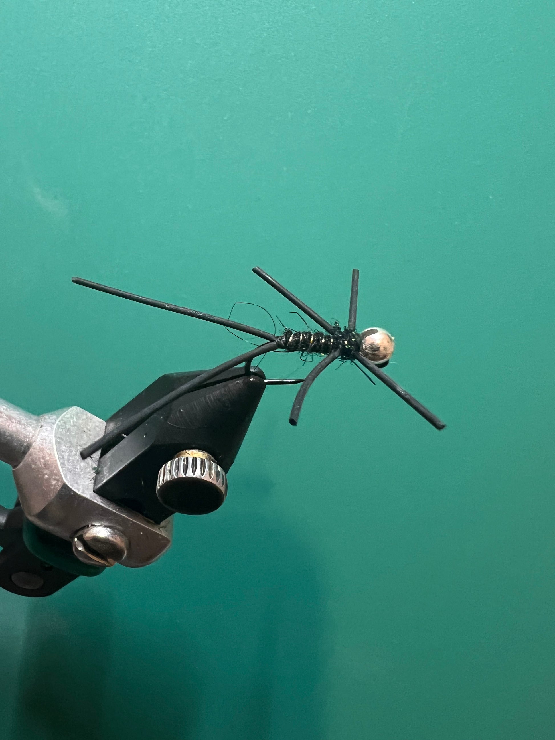Small Rubber Legged Stonefly tied on a Jig Hook with Tungsten Bead.