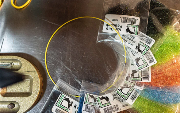 Materials look so great hanging on the wall in a shop, but most fly tying benches look like a bomb just went off. The Bench Rings solve that problem. The stainless steel rings allow tyers to organize materials, hooks and beads by style/size/type/color using the same bags they came in.