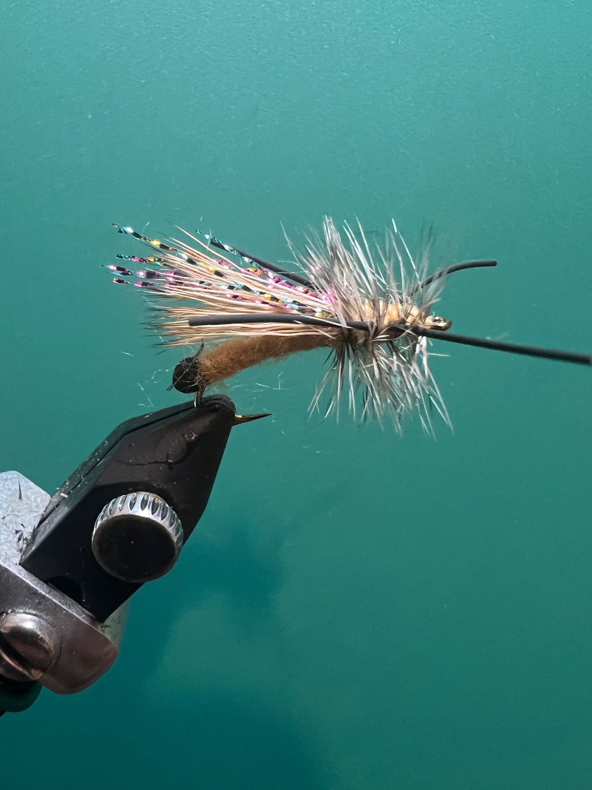 Skawala Stonefly dry fly tied with Rubber Legs for added movement.