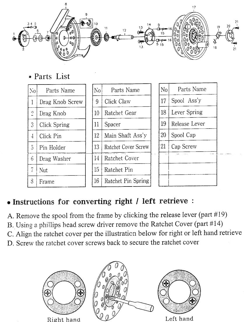 - Standard arbor that can hold up to 100 yards of backing